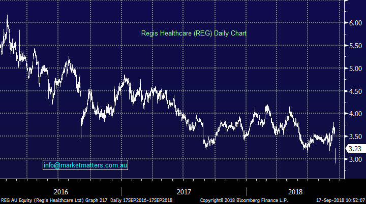 Estia Health (ASX:EHE) $2.48, Japara Healthcare (ASX:JHC) $1.42 & Regis Healthcare (ASX:REG) $3.23 as at 17/09/2018Event