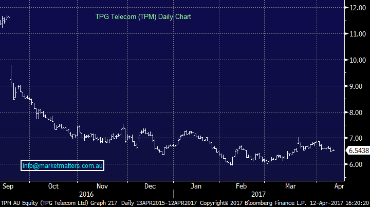 Firstly on TPG; They announced they’ve successfully bought Spectrum for around $1.3bn and plan to build their own mobile network over the next three years, spending around $600m. They’ll fund it via a combination of operating cash flows, debt and an $400m equity raise which was launched today. This was the issue we were concerned about in terms of our TPG holding recently, and it’s the reason we liquidated that positon around $6.60.