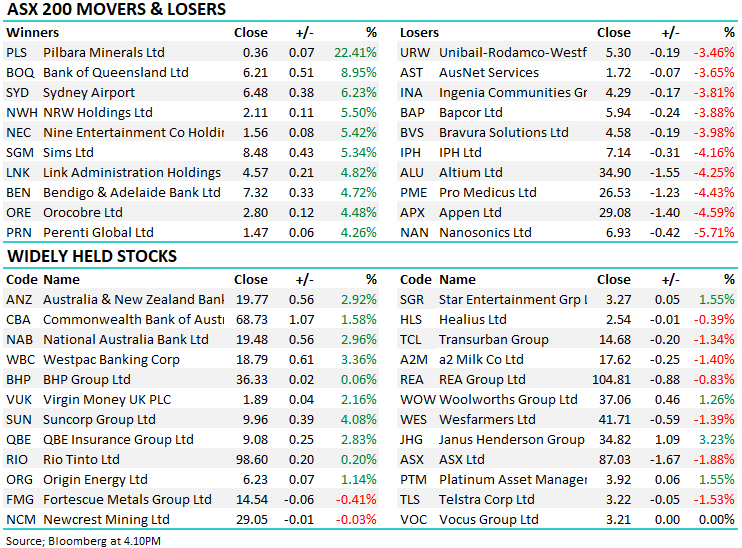 Overall, the ASX 200 closed up 6pts or 0.12% to 5998. Dow Futures are trading up 234pts/+0.89%.