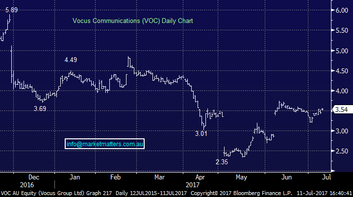 Vocus got another nibble today with Affinity throwing their hat in the ring at the same level as KKR ($3.50) per share. All subject to DD and conditional at the moment, however clearly the company is for sale.