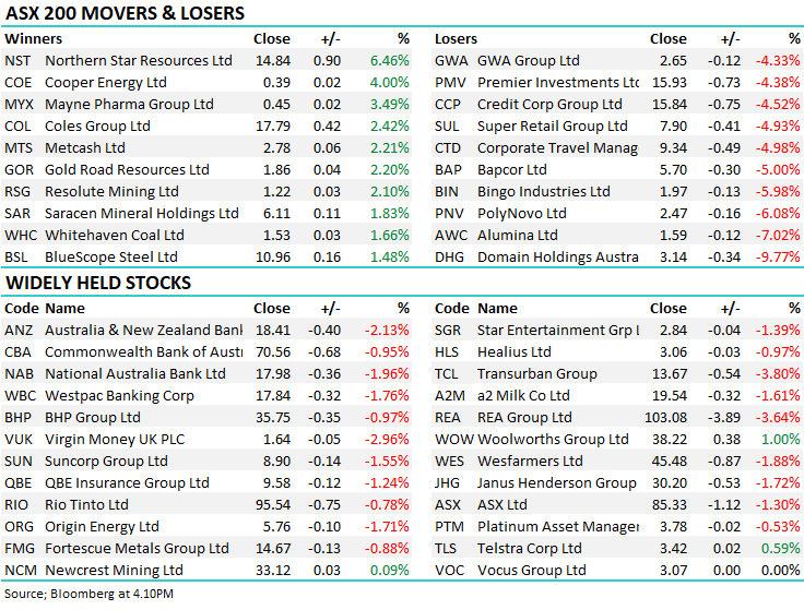 Afterpay (APT) returned to the screens today and closed at $66 – the same price as they managed to get the raise/sell-down away at. Northern Star was the latest gold name to jump on production updates while Alumina was hit on the back of the ATO chasing additional taxes.