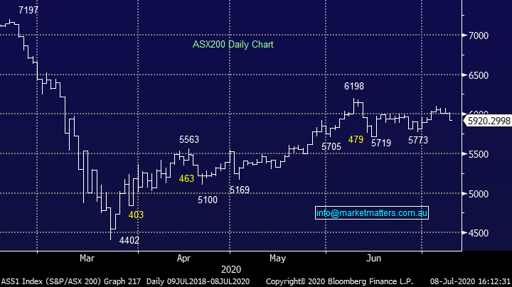 Northern Star (NST) +6.46%: jumped today after it followed St Barbara’s announcement yesterday and came out with a solid quarterly update of their own and managed to reinstate 7.5c their interim dividend. The gold miner pulled guidance in late March, at the peak of the crisis as a result of the added safety measures, and the complexity it brought to operations. With the year now complete, Norther Star managed 905koz mined, coming in marginally below the lower end of the withdrawn guidance of 920koz to 1,040koz. Despite the miss, the market was just happy to see a figure close to expectations, with the company managing to generate around $218m of cash in the quarter alone. With many in the market expecting the gold price to trend higher on low or negative real rates, investors should also be pleased to see Northern Star reducing the size of the hedge book, opening it up to increased profits on a strong underlying commodity. Just 15% of production over the next 3 years has been locked in. We are looking to pick up some gold exposure on the back foot and NST is on the shortlist.