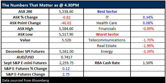 This morning’s move by the US Federal Reserve to increase rates was widely expected however the projections for 3 hikes in 2017 was above the 2 the market was pricing…That saw some late selling in the States which trickled into Oz this morning and we ended a soggy session near the lows. Santos didn’t help things with its move overnight to launch a capital raising after a good run up in share price - understandably we saw Santos weak, but so too were the other energy coys as the institutions reduced exposure to other energy plays to fund their discounted stock in Santos.