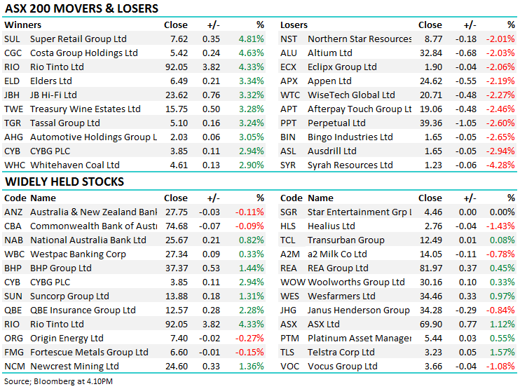 Not a lot across the ticker today although the local market continued to outperform both the US and other regional markets – the sugar hit of lower rates still working through local stocks by the look of it, although at a less aggressive pace than we saw yesterday. Overseas markets are cooling – US Futures were down 0.20% during out time zone today while Asian stocks tracked marginally lower, yet we continued to be supported.