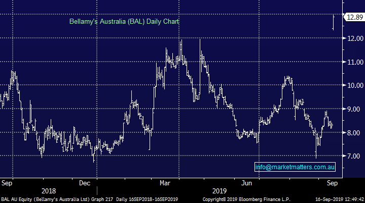 Bellamy’s Australia (BAL) $12.89 as at 16/09/2019