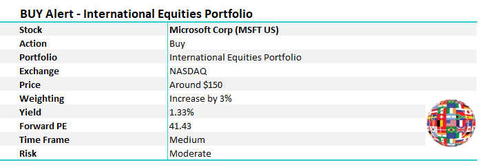 We are increasing our position in Microsoft in the US tonight, taking the position to an 8% portfolio weighting.