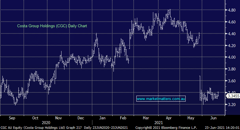 To raise the money Costa is completing a 1 for 6.33 entitlement offer at $3/sh, a ~12% discount to last netting $190m, with the remainder to come from undrawn debt facilities. The deal expected to be 10% EPS accretive with further upside seen in synergies and increased crop yields as the plants mature. Along with the acquisition, CGC said it expects EBITDA for CY21 to marginally ahead of CY20, around in line with market expectations.