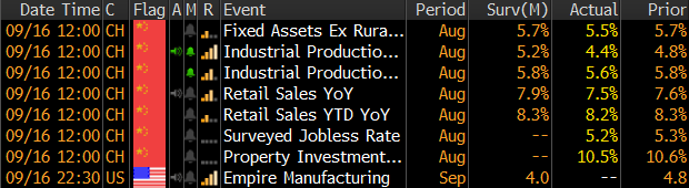 Chinese data today was weaker than forecast, Industrial Production which measures the output from manufacturing, mining and utilities came in shy of expectations while Retail Sales were also a touch on the light side. Asian markets were mixed today while US Futures were trading down around 0.50% for most of our session.