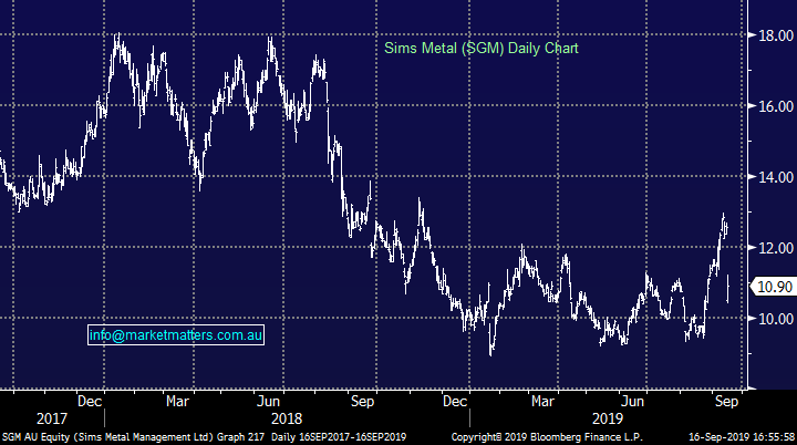 These issues have forced Sims to update the market for their half year result saying they are “expecting the outcome (profit) to be materially lower than the prior corresponding half year,” while holding fire on the full year, leaving the door open to a recovery in the price in the remaining 9 months of the year. The market was expecting an 8% increase in profits to $174.9m over the full year, while they managed $76.5m in the first half of FY18. A materially lower first half would leave a big margin to make up in the second half. We see it going to test the lower end of the range around $9 before pushing higher. It remains leveraged to global growth and positive news from the US-China talks.