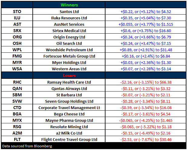 Energy the standout again on the market today following developments over the weekend from non-OPEC countries agreeing to cut production + the Saudis will cut more than previously advised...this put a decent bid tone under the Oils with Santos (STO) the big winner up +5%...while our position in Origin Energy (ORG) continues to please adding another +3.66% to $6.79.
