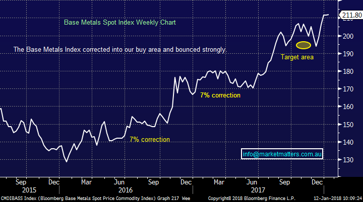 The copper focused Australian miner OZL is a very tricky stock to identify perfect entry levels but its volatility does offer some excellent opportunities on a regular basis. Yesterday OZL closed 2.5% below where we took profit on our most recent position exited in late December. The question is where to buy and considering we can easily see a 5% correction in base metals at this stage we will be fussy.