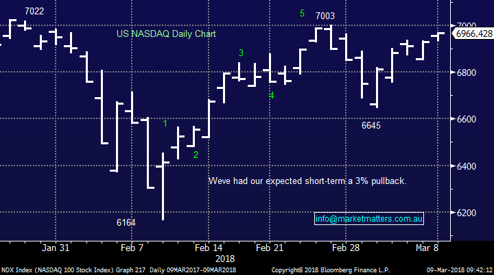 Interestingly last night the tech-based US NASDAQ, in our view market leading index, again made fresh highs for the month and traded within 0.7% of its all-time high – a clearly positive sign.