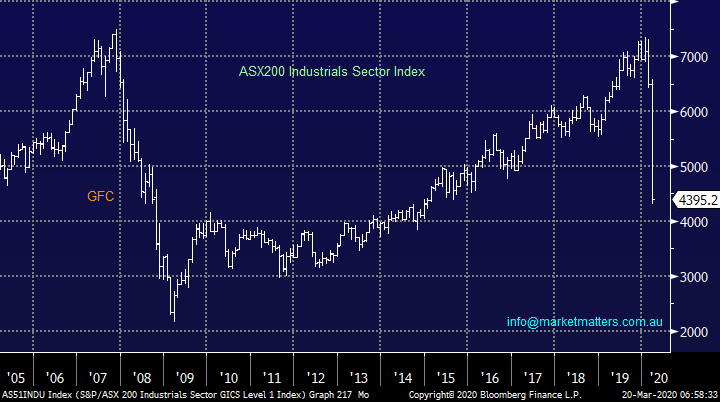 Today we’ve briefly looked at the major sectors which make up the ASX200 as a precursor to this weekend’s note, which will focus on how we see our portfolios positioned moving forward. Our view remains that we need to take this opportunity to ‘up spec’ our portfolios, gravitating up the quality spectrum to set a portfolio (s) that will give us best returns relative to risk from here.