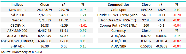 Overnight US stocks rallied solidly with the S&P500 gaining 1.2%, unfortunately the SPI futures are suggesting the ASX200 will only bounce ~15-points, or 0.25% implying most of our good work played out yesterday.