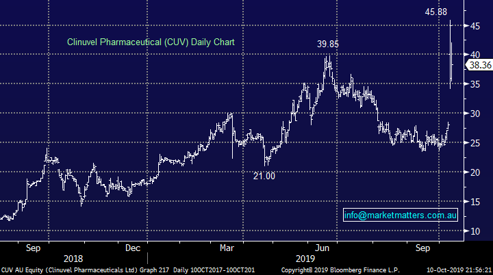 3 Clinuvel Pharmaceutical (CUV) -14.8% - this Melbourne based biopharma business saw its shares fall almost 15% yesterday but they’ve still soared this month taking the companies valuation to $1.9bn. The fall appears to be simply attributable to profit taking after the amazing gains on Wednesday, following the FDA approval of its SCENESSE for the treatment of EPP in adults.
