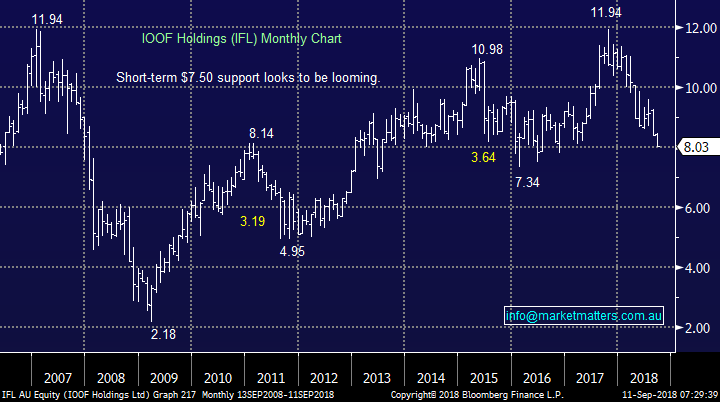 IFL’s profit release in August showed profits down well over 20% despite organic growth in the business but the big issue is they appear to have bought ANZ’s wealth division at the top of the market. The Royal Commission has shone the light on this sector (and rightly so) in a way that will lead to ongoing regulatory costs, with IOF’s patchwork of systems thanks to recent acquisitions making this a more complicated / costly process for them. That means ILF will find it difficult to achieve the full benefit of recent acquisitions and it seems clear that they’ll look back in time with a grimace in terms of what they paid to acquire scale.
