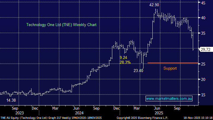 What concerned me in their last update was the rise in gearing, which ticked up meaningfully. SHAW’s analyst in the stock Peter O’Connor actually likes it at current levels on valuation grounds (he has a $1.80 price target) and we discussed the company in our recent Webinar. I believe the stock is now what we would term “looking for a low” but after rallying close to 15% it’s not exciting. However, if we see another test of 80c MM may take a small speculative position but we don’t believe this is a stock to chase into strength.