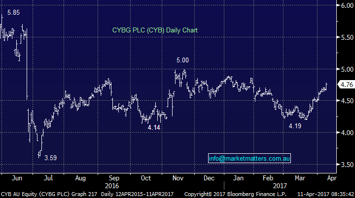 We allocated 5% of our portfolio into CYB, the spin off bank from NAB that operates in the UK - we are very keen on European facing exposure at this point in time. This clearly leaves the MM very overweight the banking sector, our current intention is to take profit on our CBA position into seasonal April strength, ideally in the $88 region.