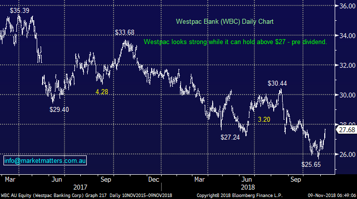 MM is bullish WBC from current levels while it can hold above $27 i.e. before it trades ex-dividend (94c fully franked) in 4-days’ time.