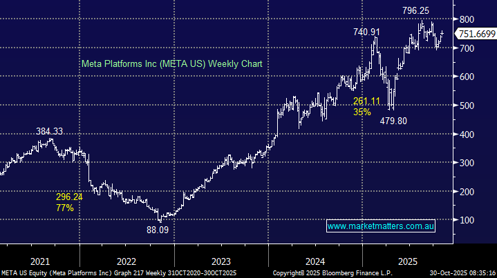 At MM we feel the last 2 have almost finished delivering for the sector hence we pose the question, “is it time to take some $$ from the table?”. This time last year the sector was approaching its greatest sell-off in over a decade as investors and momentum traders alike dumped the high valuation / growth stocks, we put the possibility of a repeat performance at ~25% i.e. technically the sector looks very vulnerable to a retest of Q4 lows, now a significant +20% away.