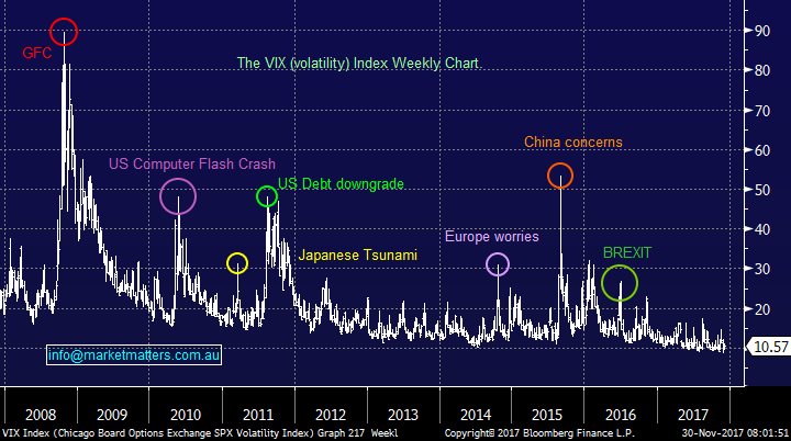 Over the last 24-hours the press have been full of bitcoin surging over $US10,000, but this morning we wake up to see another ~20% fall in just a matter of hours, this is casino stuff! Hopefully people playing in this space have assessed all the risks / volatility because with the exception of the GFC, I have not seen a market move with such wild swings.