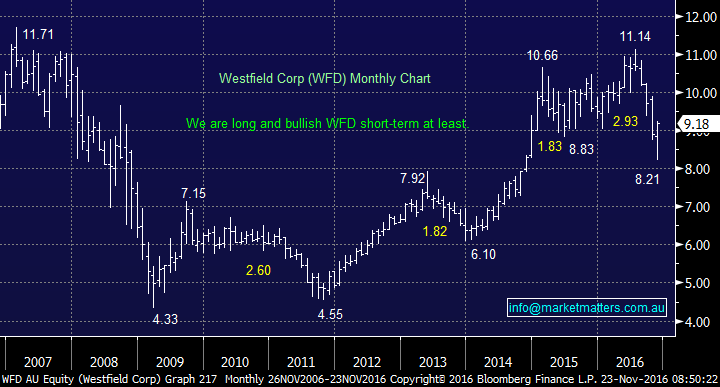People like to buy what is perceived to be cheap, especially when they on high cash levels – Fund Managers are almost forced into stocks. After their recent pullback the defensive yield stocks are / will be popping up on investor radars - WFD has rallied 11.8% and TCL 5.8% from the recent lows.