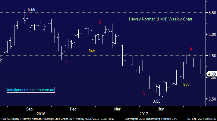 HVN was whacked over 7% yesterday after disappointing investors with its earnings as discussed in the afternoon report yesterday. This reaction suggests that HVN may be in the sin bin for some time however for now, we’ll continue to hold in the Income Portfolio.