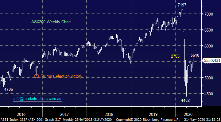 While it’s important to understand that MM is not calling a major top we do feel there’s a very good chance that the next say 6-8% move for stocks is down hence we have started to increase our cash position after carrying an aggressively long stance over recent months. If we are correct this will give us a great opportunity to add some alpha / value to portfolios as we look to “leg’ a couple of switches we have been monitoring of late. The ASX200 has now been testing ~5600 for over a month which is classic topping “rolling over” price action e.g. even before this year’s sudden drop at the end of February the ASX200 had been testing the 7150-7200 area for 5-weeks i.e. tops tend to rollover whereas bottoms reverse sharply – a function of human psychology.