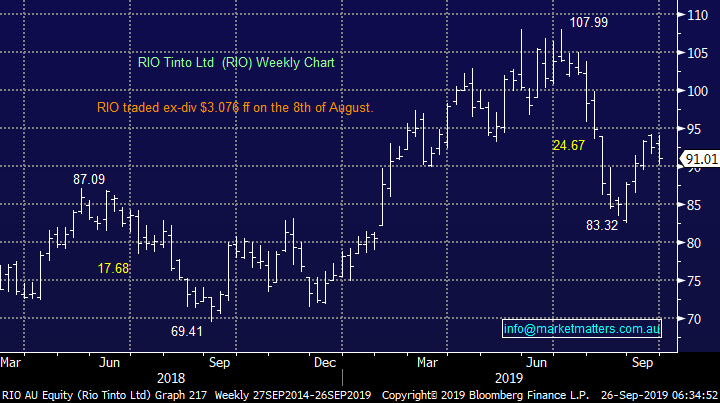 RIO traded ex-dividend $3.076 fully franked on the 8th of August – MM went long on the 5th of that month for our Growth Portfolio.