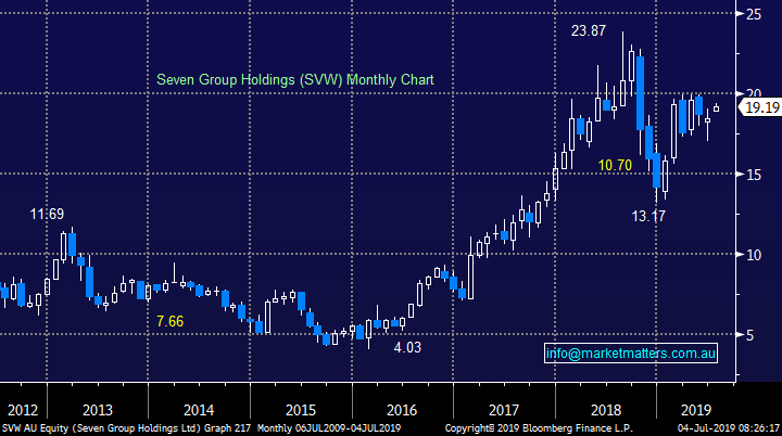 SVW is also not trading on a demanding valuation with an Est P/E of 14. for 2019 although the shares are only yielding 2.2% fully franked.