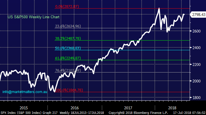 Below is the S&P500 showing potential retracement targets since its swing low in early 2016, the 3 simple retracements we consider at MM are: