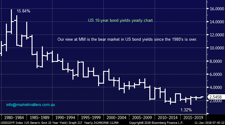 Yesterday the ASX200 experienced a degree of weakness not felt since mid-November with a reversal down of over 50-points. The selling was focused in the bond proxies / yield play stocks with for example the real estate sector -1.8%, Transurban -2.7% and Sydney Airports -2.1% - today we will update our view on these stocks as we look at the likely / potential influence of bonds / interest rates on equities.
