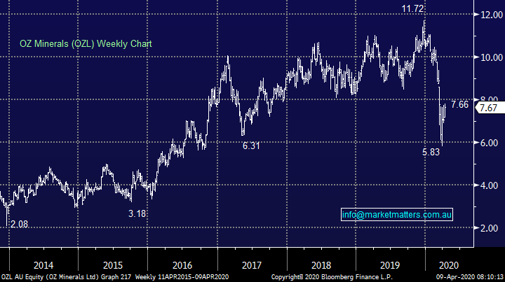 Yesterday the Bank of Queensland (BOQ) followed APRA’s “suggestion” and deferred its dividend, a lot of Australian investors rely on income from bank dividends to meet their daily needs, potentially we might be about to see a mass retail bail out of a sector, just when the medium-term valuations are arguably becoming compelling. MM reduced its Westpac (WBC) holding at the end of March above $17, while CBA remains our no 1 pick in the sector. For those not exposed to the sector, we see a strong risk/reward buy if the sector falls another ~10% to fresh 2020 lows.