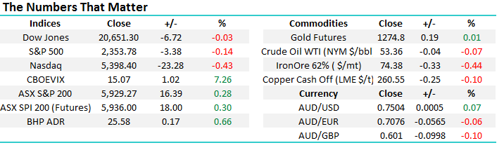Geopolitical risks may be rising with North Korea now the focus, taking the baton from Syria, but investors should remember that politics create bumps in the road while economics determine the overall direction of markets. Our view is the reaction of global markets to these events illustrates perfectly the current underlying strength of equities with the Australian stocks ignoring the issues and rallying and US stocks continuing to tread water - at one stage last night the Dow was down almost 150-points but it again recovered to close basically unchanged. Three noticeable market movements due to these geopolitical uncertainties are gold, the VIX Index and the safe haven Japanese Yen all hitting multi-month highs. The VIX Index is often referred to as the "Fear Index" and its recent strength shows us investors are not prepared to sell their equities but they are keen to buy some protection just in case mass conflict breaks out.