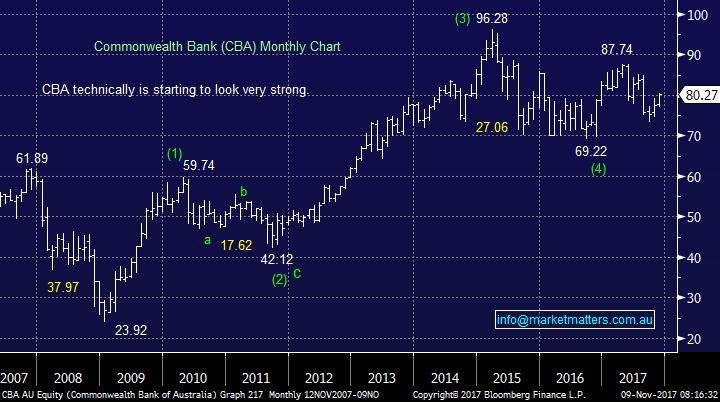 FXL enjoyed a bounce yesterday but it’s been an awful few year for FXL who made fresh 6-year lows this month. This is a sector under increasing competitive pressures from smarter and more nimble tech players and simply FXL management have failed to convince the market about their ‘growth plans’. The 4.8% fully franked yield we think is a trap. FXL undoubtedly will have more great bounces for the aggressive trader and a ~20% rally from this $1.50 area feels a strong possibility but this is more trading stuff, not quality investing.