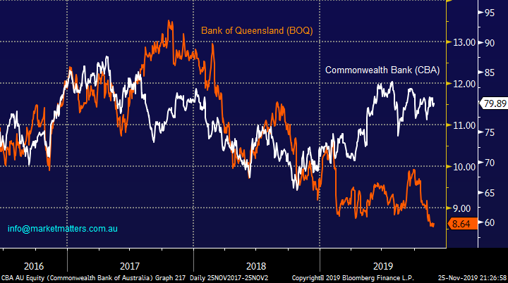2 Bank of Queensland (BOQ), best guess is a reopen ~$7.70 – no change, it would be easy to say sell CBA and buy BOQ but to MM the regional banks are in the worst position in terms of funding a higher regulatory burden going forward.