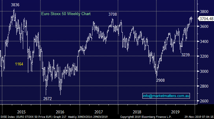 European indices continue to “climb a wall of worry” at this point in time MM is neutral but we maintain our slight positive bias with a target ~5% higher looking realistic.
