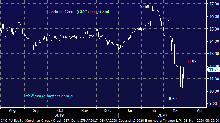 In February the Real Estate Sectors largest player Goodman Group (GMG) delivered for investors with its half yearly results increasing operating profit by over 14% to ~$530m which translated to an upgrade in FY2020 earnings estimates – a great example of a quality company repeatedly delivering. Unfortunately COVID-19 will now adversely impact FY2020 but they still illustrate GMG is a quality operation whose plunging share price has caught our eye.