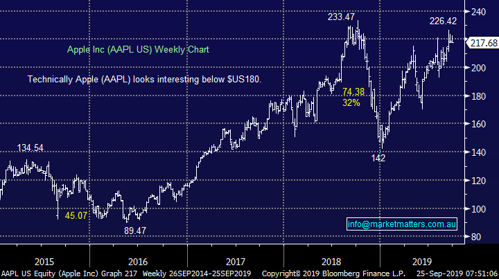 Household name AAPL could easily get “walloped” if markets believe US – China trade might deteriorate further, easy to comprehend considering some of the players. If we see a spike lower in AAPL MM is considering increasing our holding.