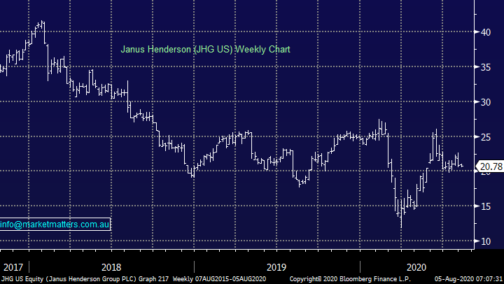 Similarly, investment manager JHG remains in our sell sights, it has recovered strongly from its 2020 low but after more than doubling since March its started to struggle as outflows continue to disappoint. Switching MM to neutral the stock technically while there are other sectors we prefer fundamentally, hence it remains a prime candidate to help us increase cash levels.
