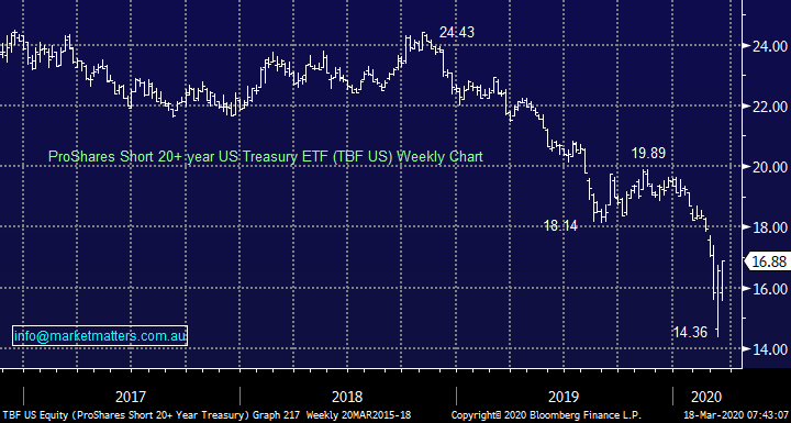 2 – Bond proxies like Sydney Airports (SYD) and Transurban (TCL) who carry huge debt levels - we have considered both of these names in recent times but held off because of debt but TCL sub $10 will be tempting.