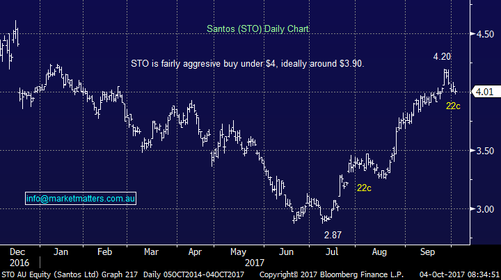 STO is an aggressive buy under $4 and ideally under $3.95, targeting a rally towards the $4.50 area.