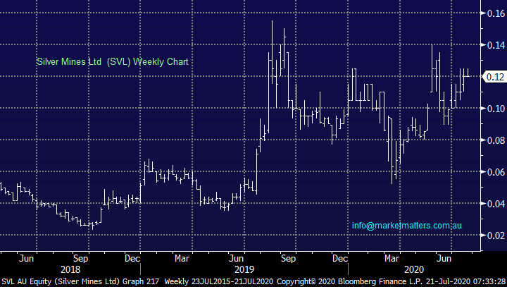 For subscribers who are after a local “speccy” pure silver play on the ASX probably the best pick is SVL with its Bowden’s Project but this $121m company is not one for MM.