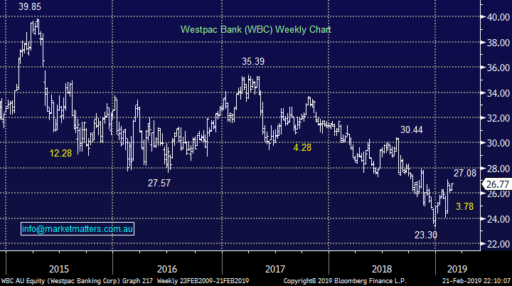 When we look at Westpac (WBC) it may be 15% above its recent multi-year lows, however trading on a forward PE of 11.5x and yielding 7% versus a broader market that is now expensive remains appealing to us, even though I appreciate that growth is hard to come by in the sector.