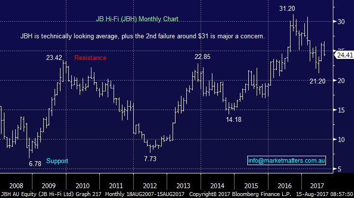 BEN showed a strong blue print yesterday for the broader banking sector, highlighting that effective re-pricing of a loan book will lead to strengthening margins and in an environment of lower bad debts, this creates a very strong combination for bank earnings! The result was taken extremely well and the stock closed up an impressive 7.5% - BEN has been heavily shorted recently which is likely to have assisted yesterday’s gains. The bank is paying a 34c fully franked dividend in the first week of September putting the stock on a yield of 5.62% fully franked plus providing some small steady growth which makes the story pretty compelling.