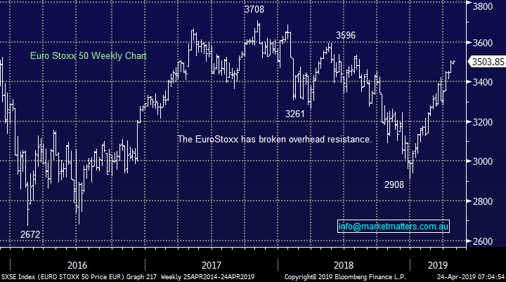 With both the S&P500 and tech based NASDAQ recently reaching fresh 2019 highs we becoming increasingly cautious US stocks.