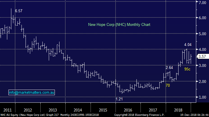 The stock we particularly like in the broader Energy Sector is New Hope Corp (NHC), ideally below $3.50.