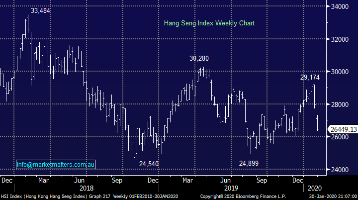 The safety of bonds continues to attract investors with the Australian 3-years and US 10-years rallying, sending their respective yields tumbling. MM expects global bond yields to make fresh lows as concerns escalate around how much the coronavirus will curtail China’s GDP (growth) – our opinion is short-term a lot but medium-term we feel they will throw the proverbial “kitchen sink” at their economy to get growth back above their minimum target of 6%.