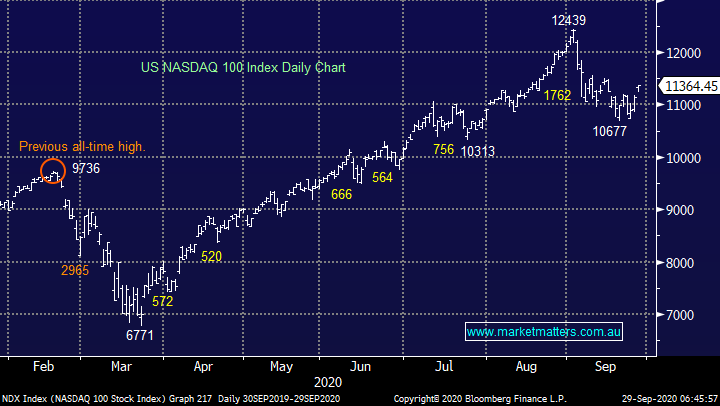 Personal politics aside we have a US election early next month which the bookies are telling us is very close as Trump attempts to narrow the gap – this morning Sportsbet has Joe Biden favourite at $1.75 followed by Trump at $2.1 as we head into the debates. There are a number of different potential outcomes and by definition interpretations of such results, unfortunately the only certainty is the winner will have to deal with a country struggling with ~200,000 deaths from COVID-19 plus an economy having witnessed a record drop in GDP plus soaring unemployment.