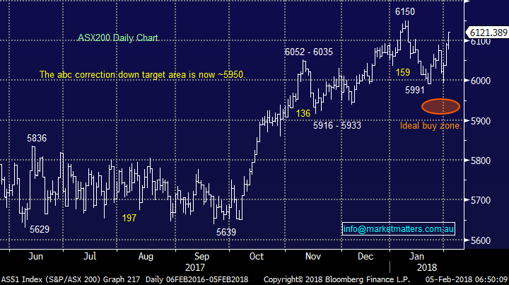 - Our “Gut Feel” at MM remains the ASX200 will reach the 5925-5950 support area in the next 1-2 weeks for a short-term buying opportunity at an index level.